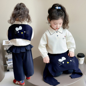 女童披肩卫衣套装春秋新款女孩卫裤两件套休闲运动童装秋装衣服潮