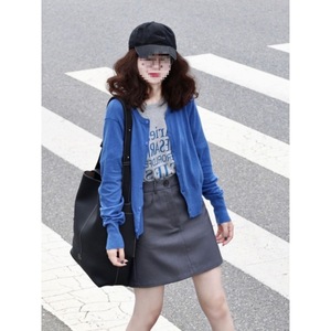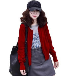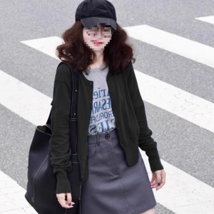 黑色短款圆领针织开衫女显白春季小个子外套慵懒软糯毛衣外搭上衣