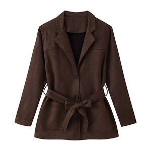 ZARZ 自制 欧美风 新款女装 配腰带反绒皮效果夹克外套4968221