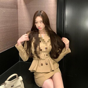 迷雾柏林 卡其双排扣外套女春秋+裙裤两件套秋季收腰气质裙套装