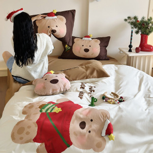 可爱ins风圣诞节卡通100支保暖纯棉磨毛四件套全棉被套床单床品