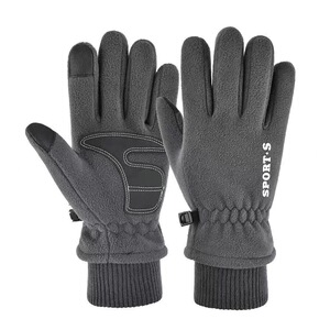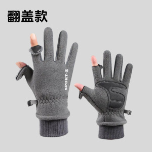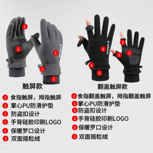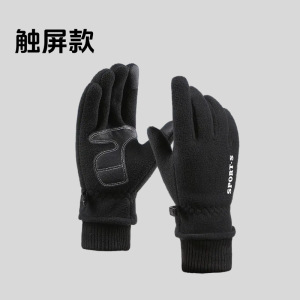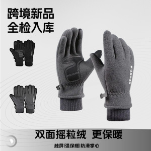 摇粒绒手套全指男女冬季保暖手套加绒加厚户外运动骑行滑雪手套