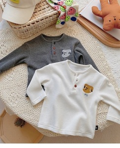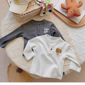 男女通儿童T恤棉华夫格春秋长袖卡通韩版洋气宽松休闲男童上衣