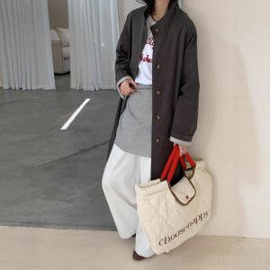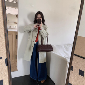 2025秋季新款立领中长款风衣 日系简约长袖宽松大衣外套女