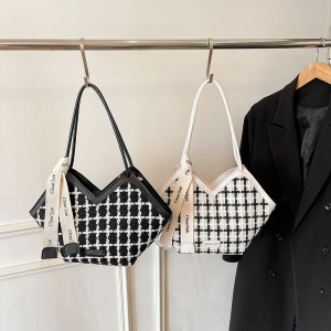 2025新款手提包质感单肩包大容量格纹托特包洋气通勤包菜篮子女包