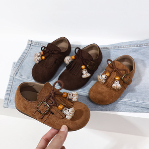 流苏串珠女童休闲小皮鞋2025秋季新款中大童休闲博肯单鞋批发3676