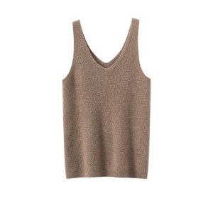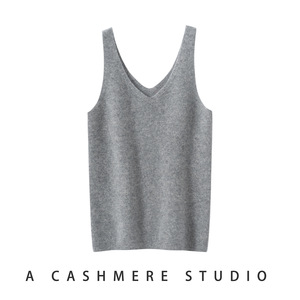 100%山羊绒女士百搭羊绒吊带打底背心2025年百搭无缝一线V领抽条