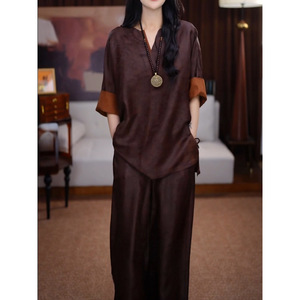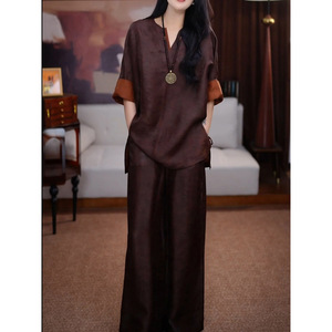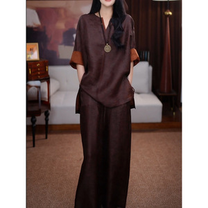 新中式国风复古套装秋季新款阔太太气质减龄百搭衬衫+阔腿裤8377