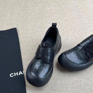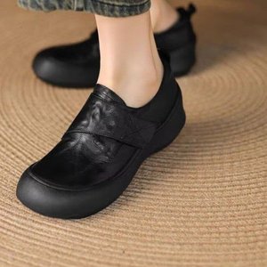 羊皮版~复古通勤真皮软底圆头小皮鞋女气质黑色厚底绝美运动单鞋