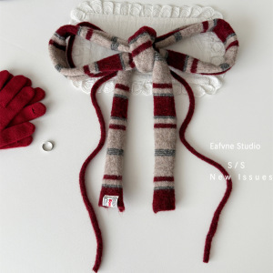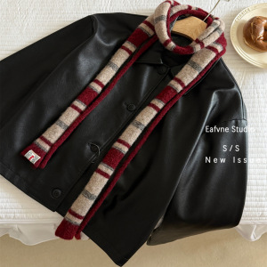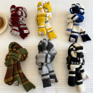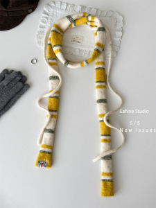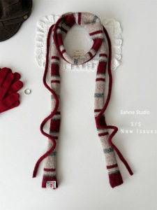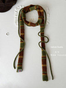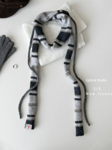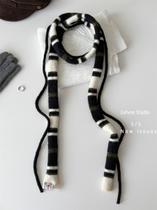 日系复古条纹细围巾小众叠戴原宿风拼色长条针织辣妹装饰围脖时髦