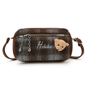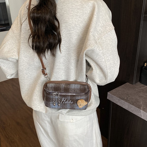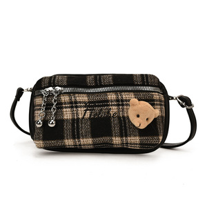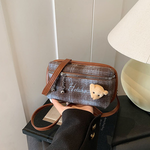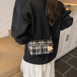 2025新款小众设计感单肩小方包迷你斜挎格子包可爱毛呢包包