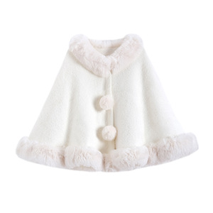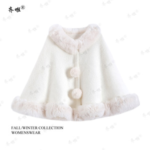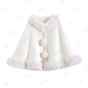 秋冬新款国风仿貂绒皮草毛领斗篷披肩纯色毛球宽松开衫外套披风女