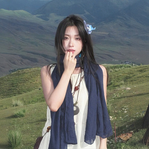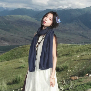 川西旅游棉麻围巾女新疆草原民族风薄款复古文艺丝巾系脖披肩纱巾