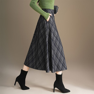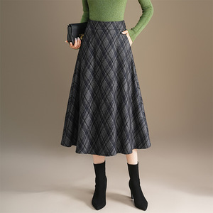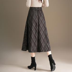 2025秋季新款格子半身裙a字裙女高腰中长款遮胯显瘦伞裙休闲裙子