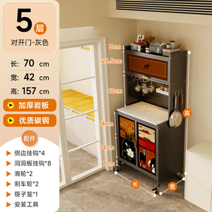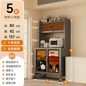 中古风厨房落地置物架钢制餐边柜家用靠墙一体岩板储物柜收纳柜子