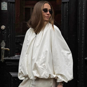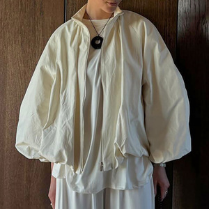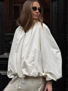 秋冬新款简约百搭白色立领拉链风衣外套女设计感气质时尚2025跨境