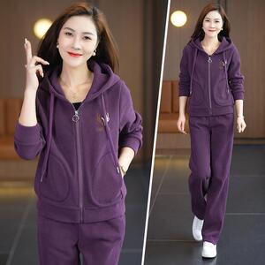 加绒加厚新款冬季休闲洋气宽松连帽卫衣运动服套装妈妈两件套冬天