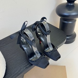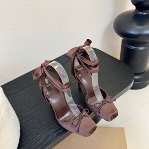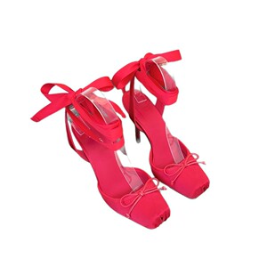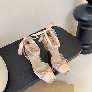 毛容易包头高跟鞋女细跟2025新款方头凉鞋蝴蝶结丝带中空芭蕾舞鞋