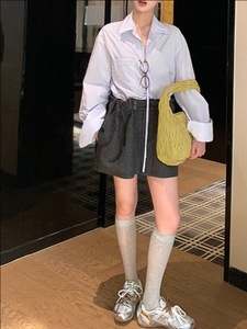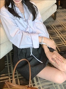 区阳翻领系带衬衫女秋季新款设计感小众复古衬衣宽松长袖上衣