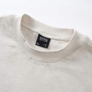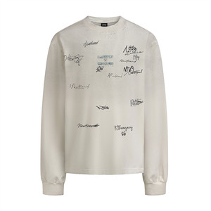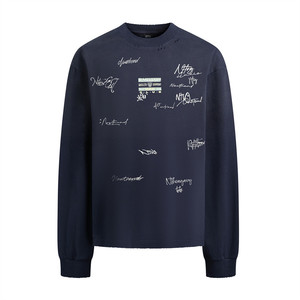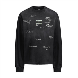 朋克涂鸦字母喷绘长袖T恤男士复古街潮磨破做旧重磅纯棉上衣300克