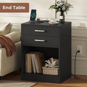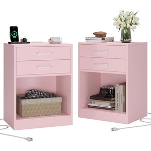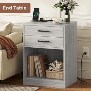 跨境可充电床头柜双层抽屉美式卧室客厅边几收纳柜储物柜客厅边桌