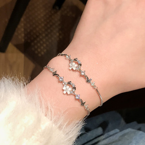 花环蝶碎钻抽拉式手链-银色