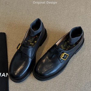 牛皮版~厚底乐福鞋女通勤黑色单鞋子百搭一脚蹬英伦学院风小皮鞋
