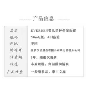 美国安唯伊儿童保湿面霜胎脂2号3号婴儿亲护润肤霜高保湿水凝霜