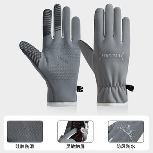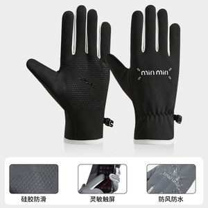 手套女秋冬季新款骑车防风防水加绒防寒保暖开车露指触屏肤感手套