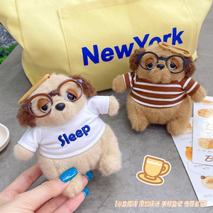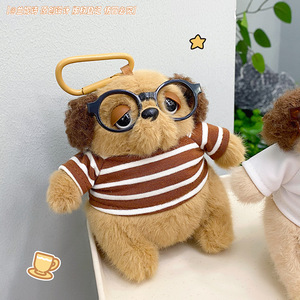 毛衣站姿眼镜情侣毛绒玩具情侣布艺公仔扣班味小狗抓机娃娃批发