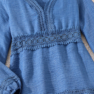 女童裙子跨境童装25秋季欧美外贸新款蕾丝花边v领收腰长袖连衣裙