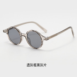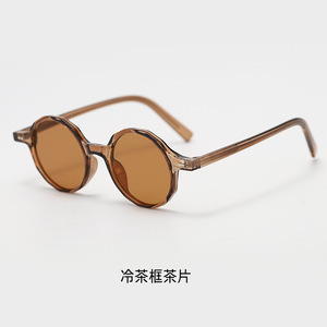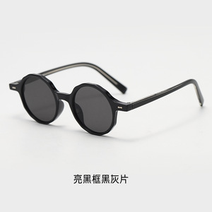 欧美复古丙酸太阳镜男多边形圆框插针豹纹墨镜女方圆脸素颜眼镜