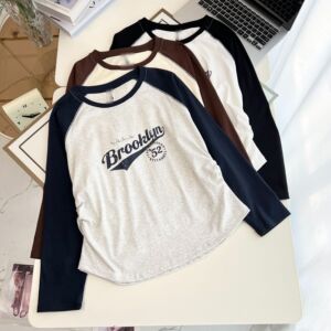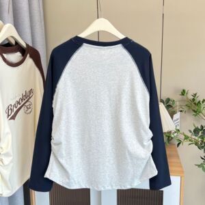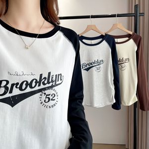 200斤胖妹妹秋装新款简约百搭拼色插肩袖印花打底衫T恤衫上衣8213