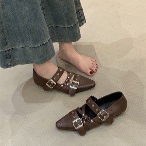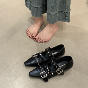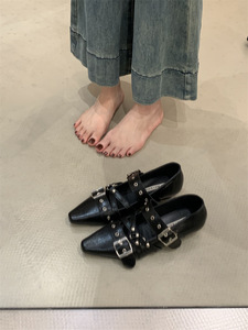 粗跟法式朋克芭蕾风黑色方头单鞋女2025春秋新铆钉皮带扣玛丽珍鞋