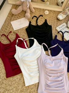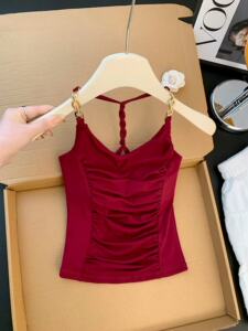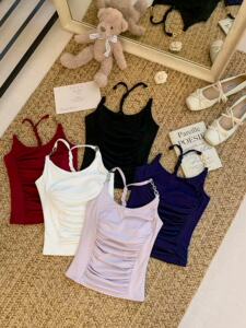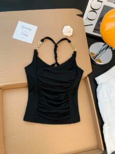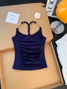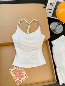 人棉挂脖链条吊带美背气质淑女金属链条挂脖带胸垫背心收腰设计感