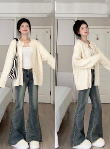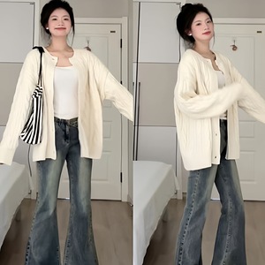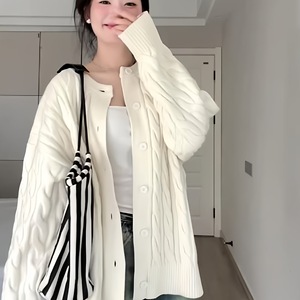 针织开衫女春秋宽松外穿韩系温柔慵懒风复古秋冬麻花毛衣外套