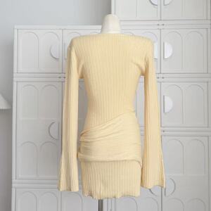 F PROJECT攻心曲线AYA*V领针织喇叭袖连衣裙飘带收腰包臀短裙