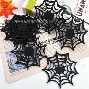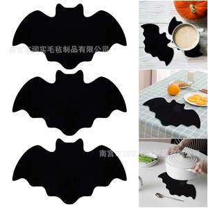 跨境万圣节毛毡蝙蝠餐垫蝙蝠蜘蛛网杯垫防滑耐热餐具垫餐桌装饰