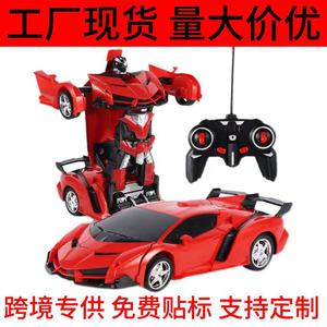 跨境一键变形遥控汽车儿童赛车模型男孩警车变形机器人玩具车批发