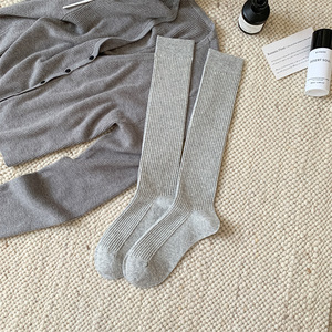 秋冬新小腿袜子女士纯色百搭微压显瘦长筒袜简约韩版芭蕾风堆堆袜