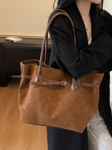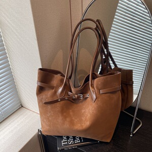 秋冬季复古大容量麂皮绒包包女2025新款休闲通勤单肩包软面托特包