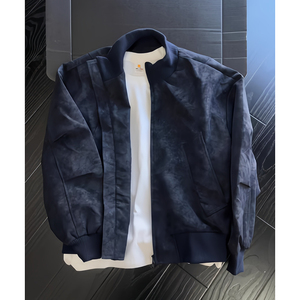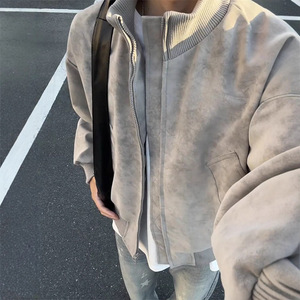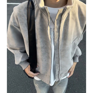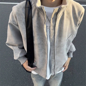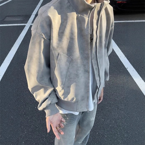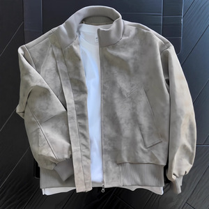 雾面扎染皮夹克男款秋季美式cleanfit廓形外套潮牌穿搭立领棒球服