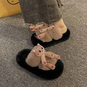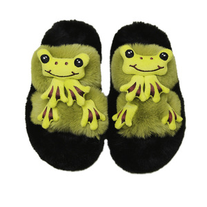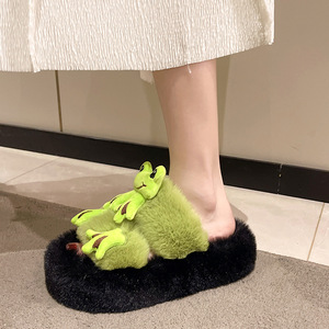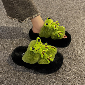 青蛙一字棉拖秋季居家室内穿毛绒厚底可爱棉拖鞋时尚潮流防滑舒适