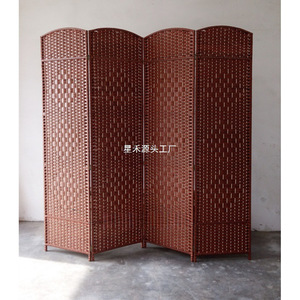 草编藤编屏风手工折叠隔断实木时尚酒店玄关客厅卧室移动折屏简