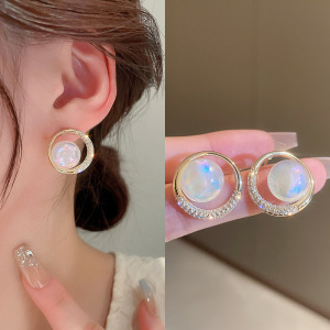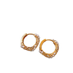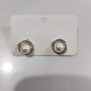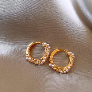 120 银针-金色环绕双圈珍珠闪钻耳环