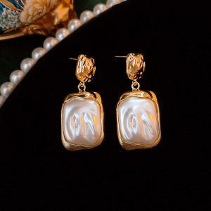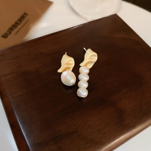 25#真金电镀925银针滴油巴洛克珍珠花朵耳钉