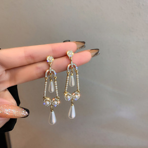14 银针椭圆蜜蜂珍珠水滴流苏耳环