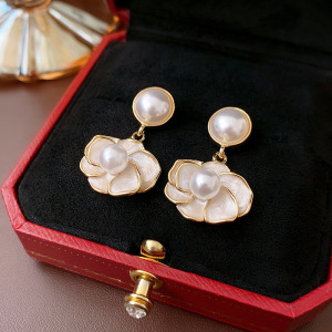 锆石珍珠花朵吊坠耳环时尚轻奢高级感气质耳钉小众设计感百搭耳饰