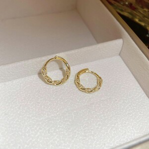 3#金色-18K真金电镀扭曲锆石圆形耳圈