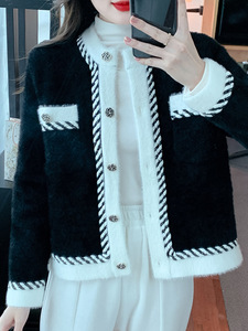 法式小香风女士短外套秋冬2025女新款宽松仿水貂毛洋气上衣A7203